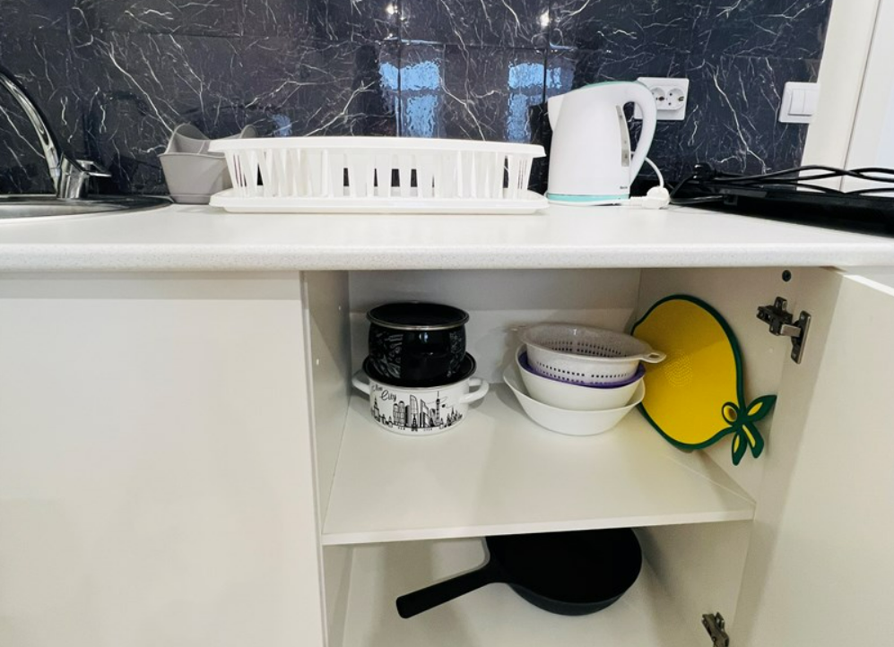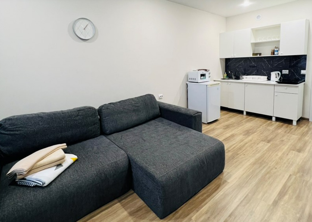 - Оборудование: кондиционер, микроволновая печь, мини-холодильник, набор посуды, плита электрическая, телевизор, электрочайник